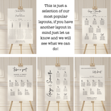 A1 Foamex wedding seating plan with your choice of one of our designs.