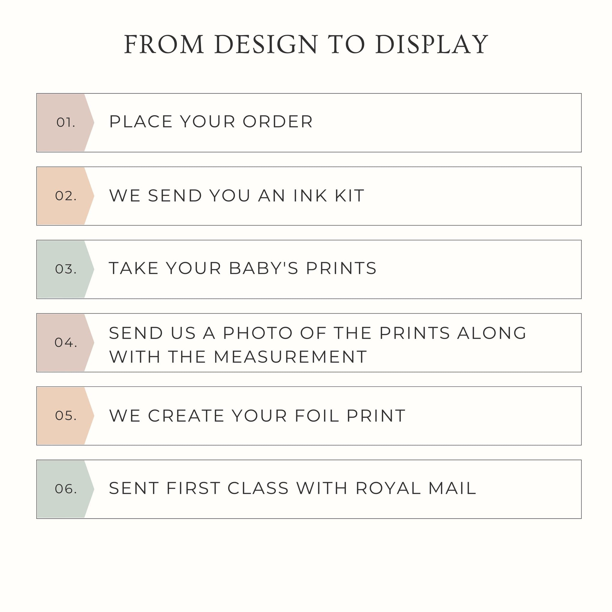 Transform your baby’s tiny prints into an elegant keepsake with our luxury foil print. Option to include a clean-touch, non-toxic ink kit for safely capturing those precious little hands and feet.