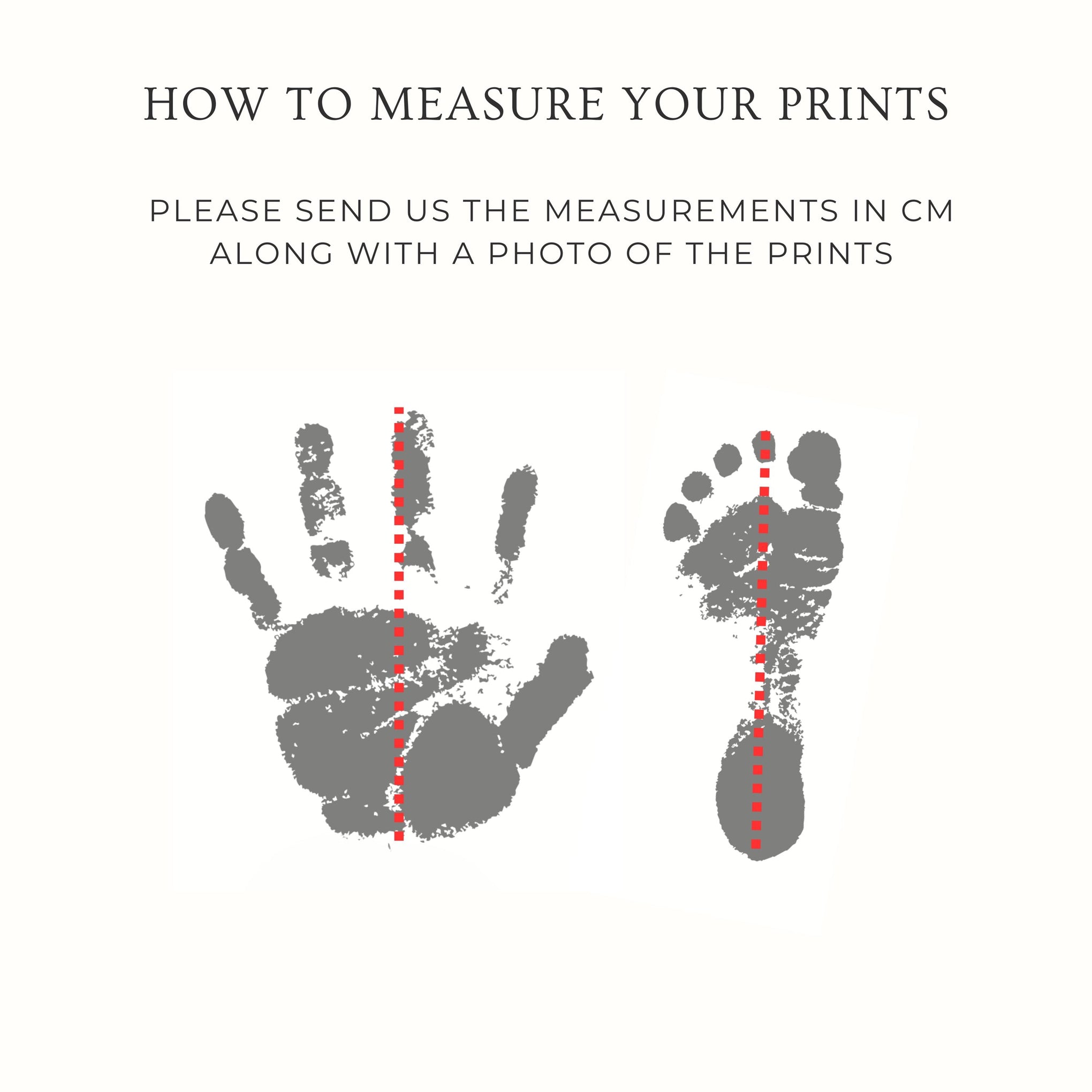 2. Take your baby’s prints using the kit, then send us a clear photo of the prints along with the exact measurements (length from heel to toe or wrist to fingertip).