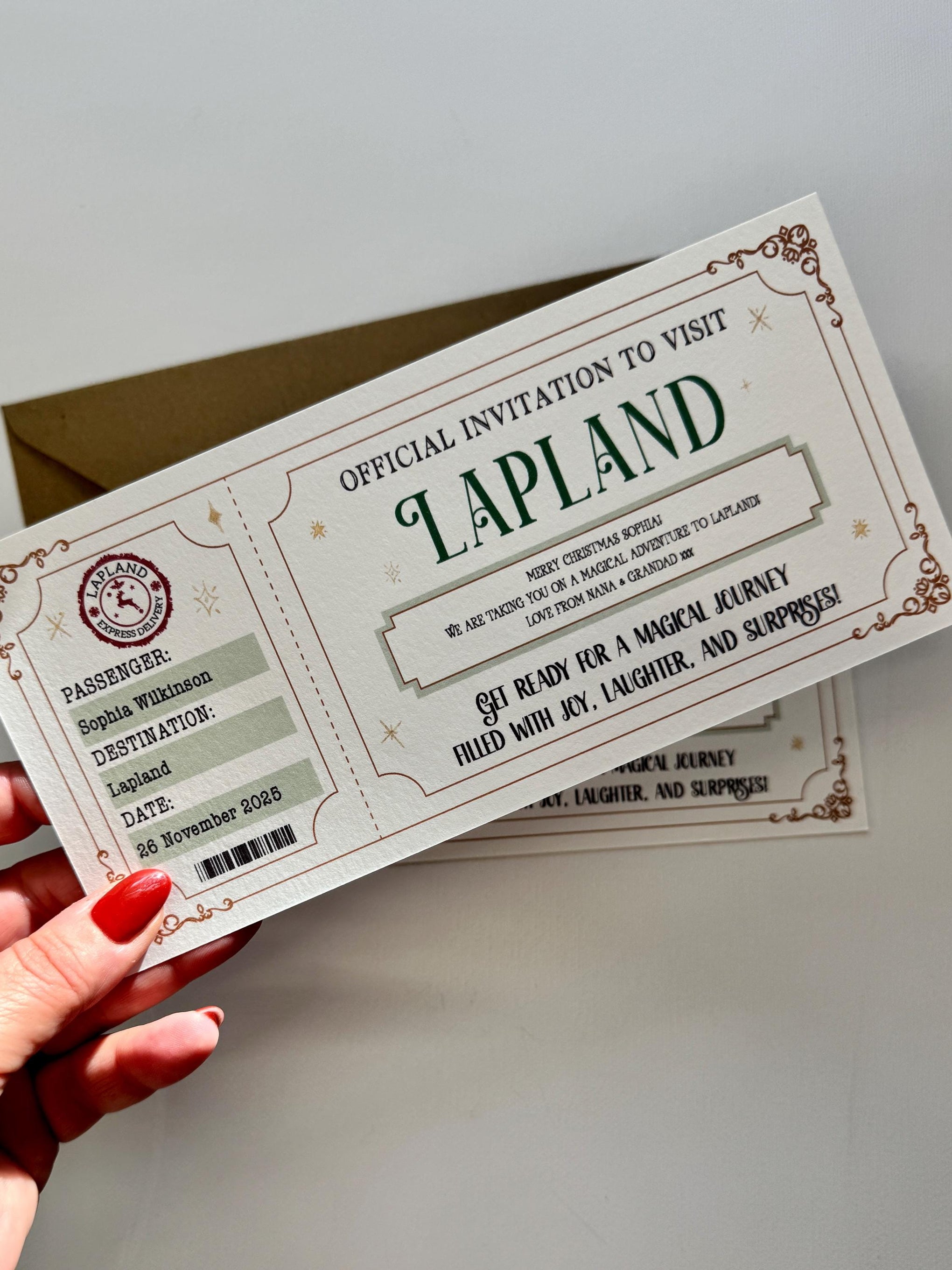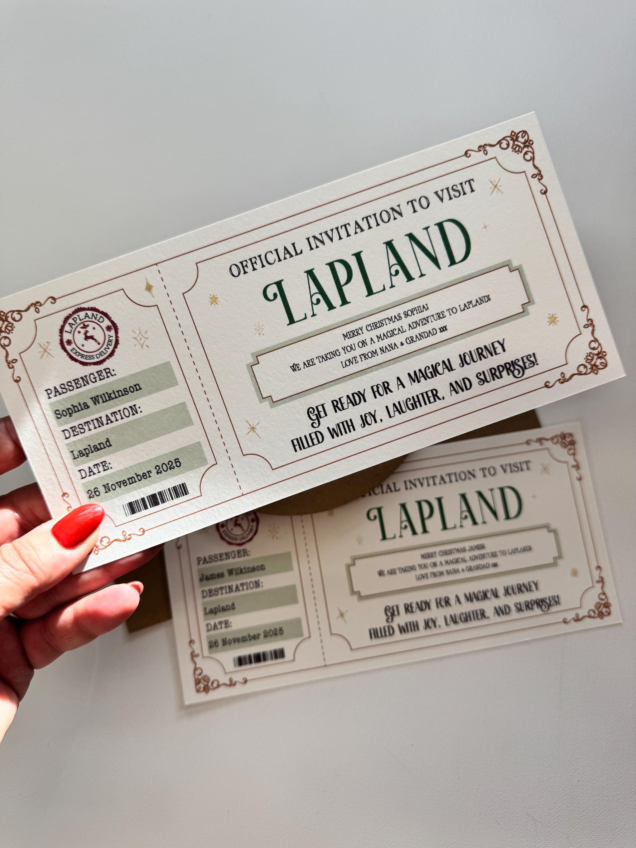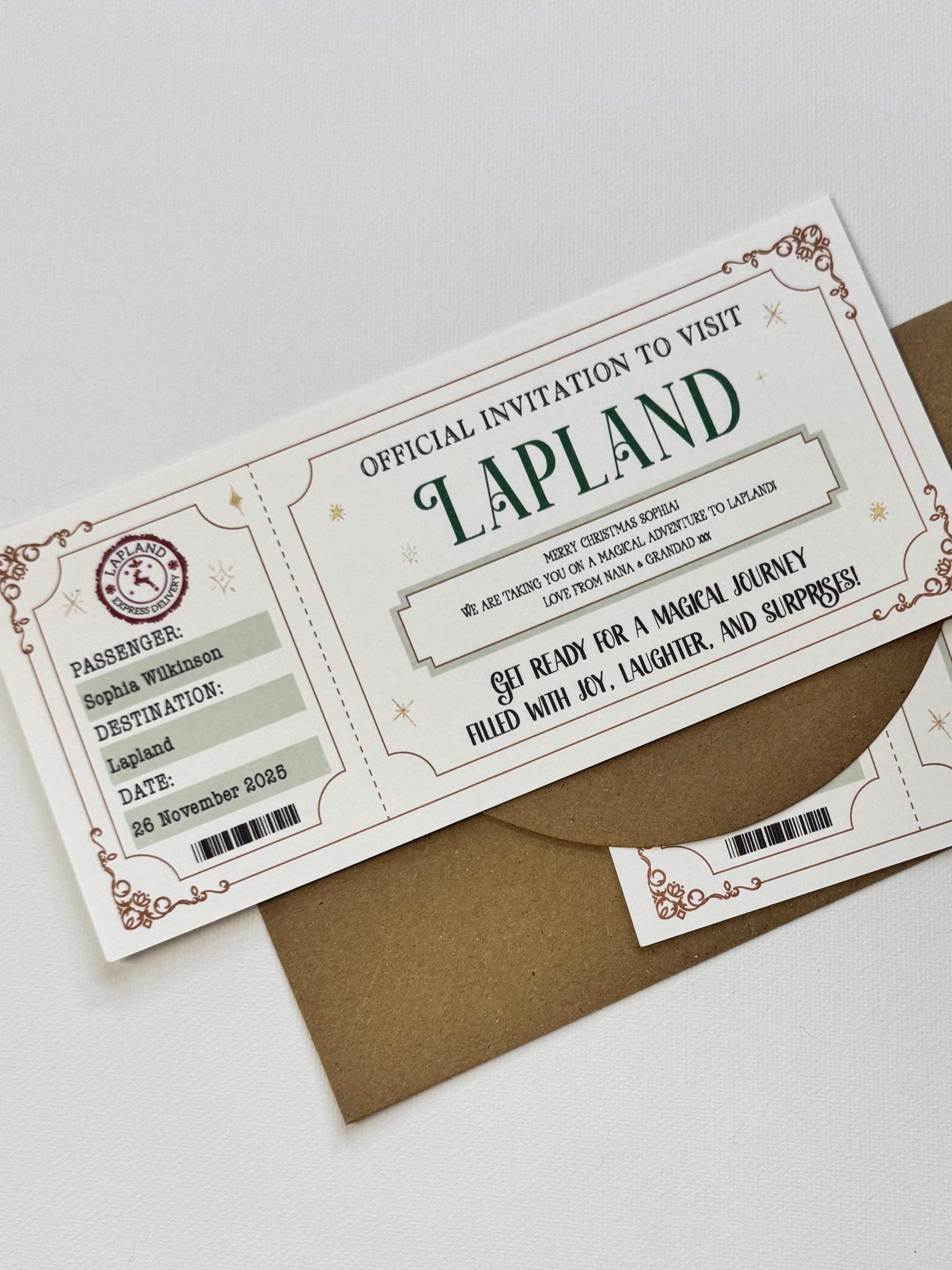 Surprise your little one with a magical Lapland adventure! This personalised boarding pass makes the perfect holiday reveal or Christmas gift for children and grown ups alike.
