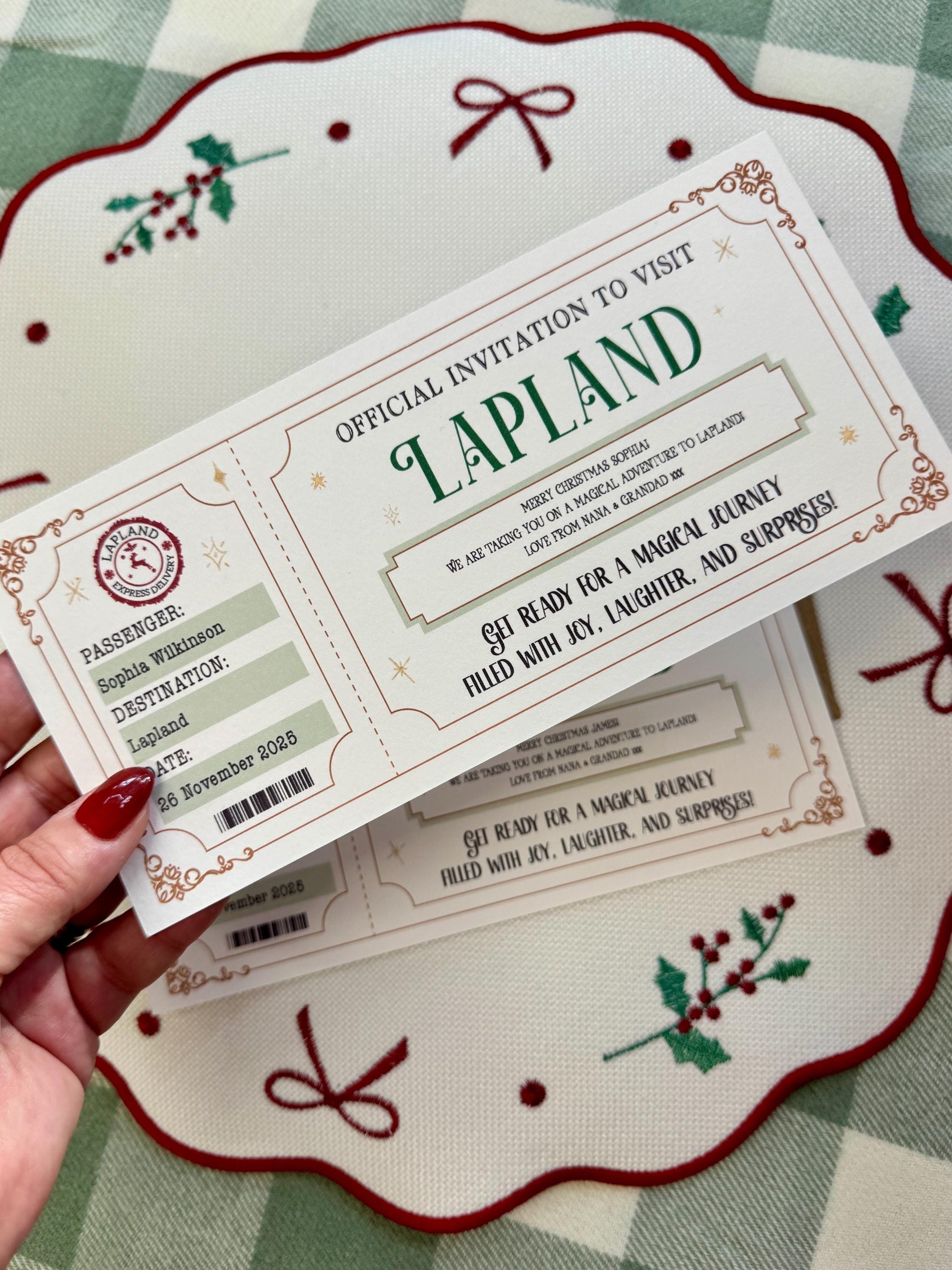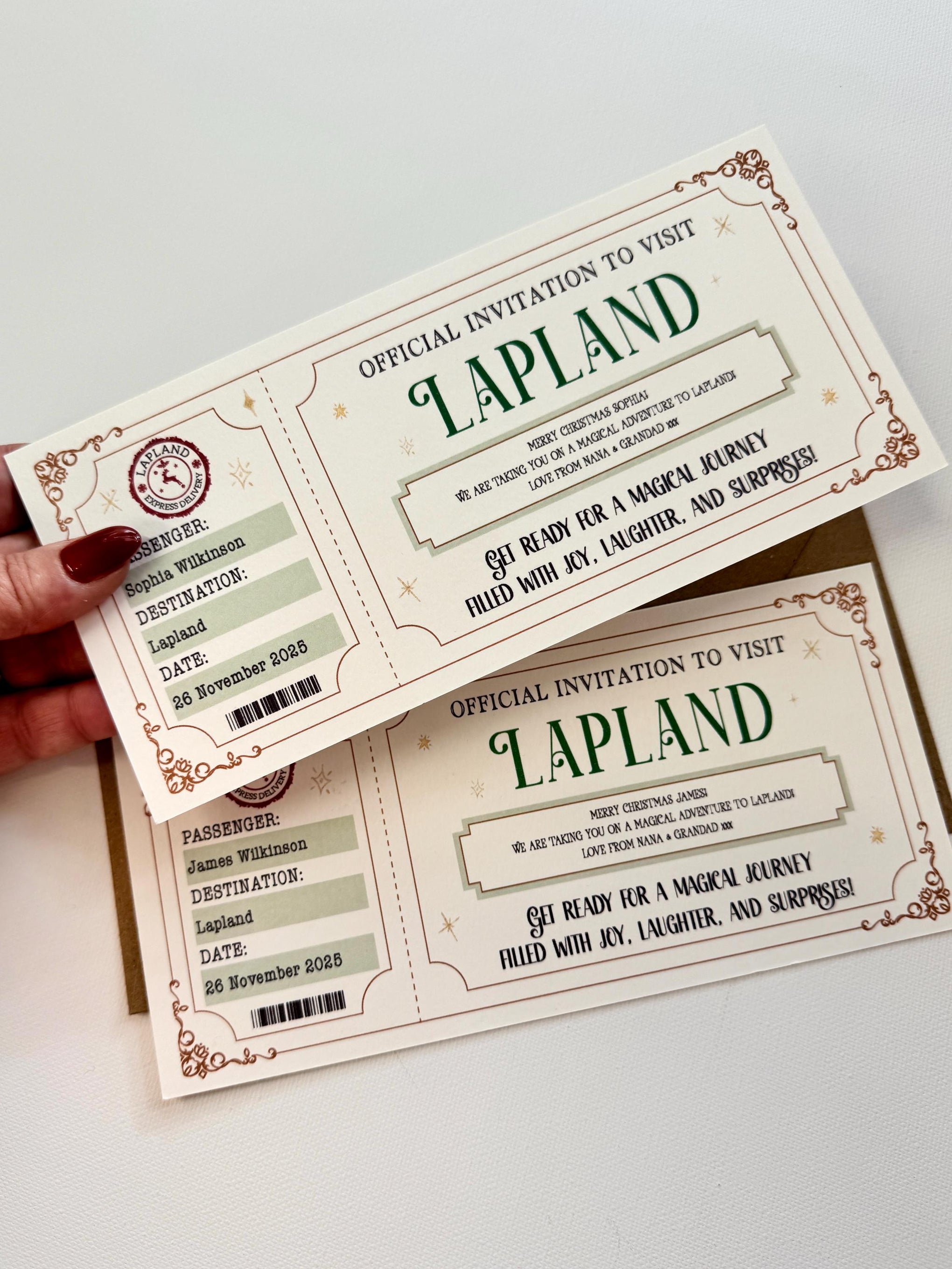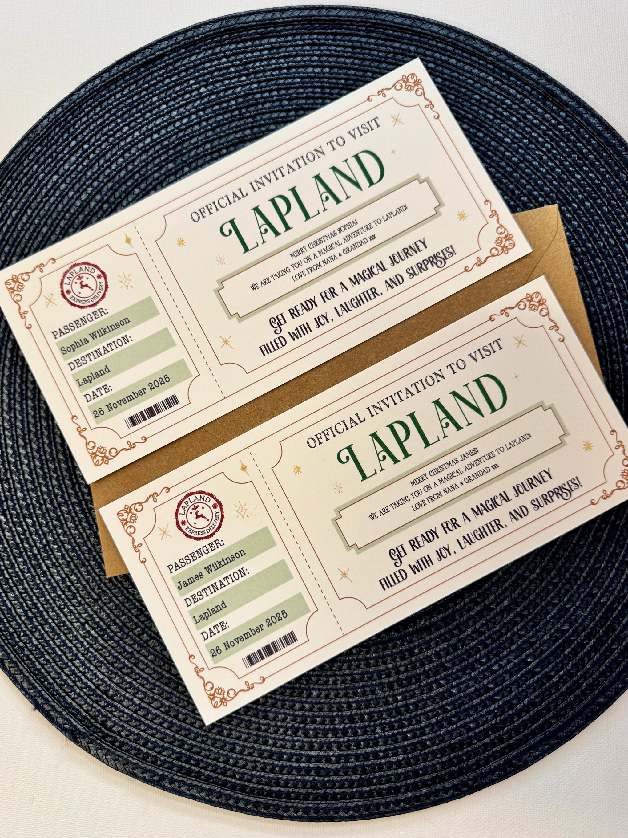 Surprise your little one with a magical Lapland adventure! This personalised boarding pass makes the perfect holiday reveal or Christmas gift for children and grown ups alike.