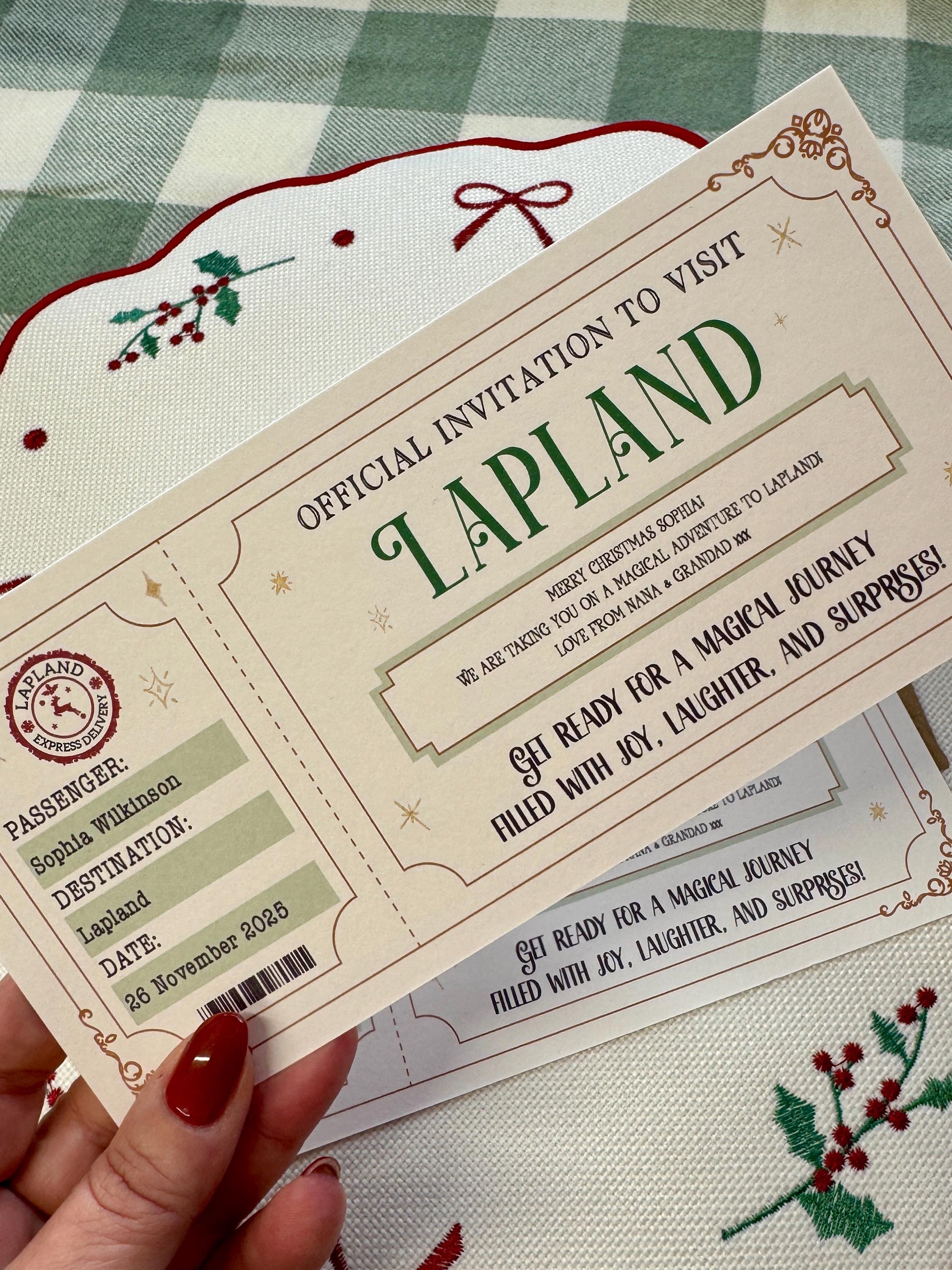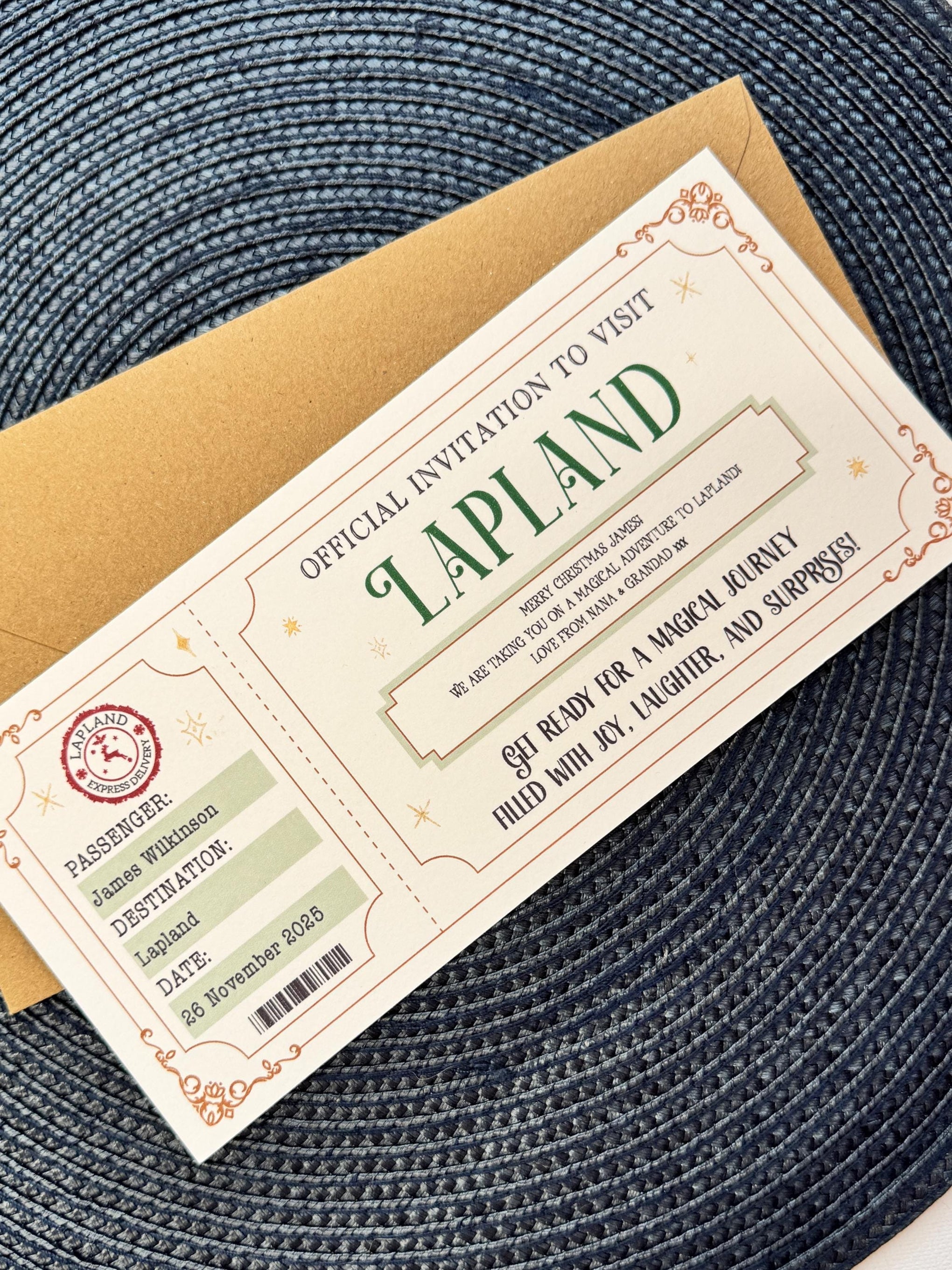 Your Lapland ticket is completely customisable with your child's details, travel date, and a special message from Nana and Grandad (or whoever is gifting this magical surprise!). Every ticket is designed to create that unforgettable moment of excitement and wonder.