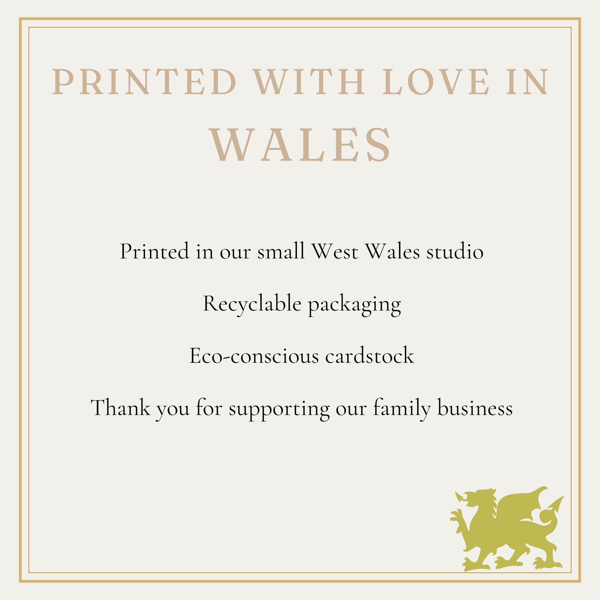 Our cards are 6x6 inches and printed on luxurious 300gsm textured cardstock, accompanied by a premium white envelope. Every design is printed and packed in our West Wales studio with care and attention to detail.