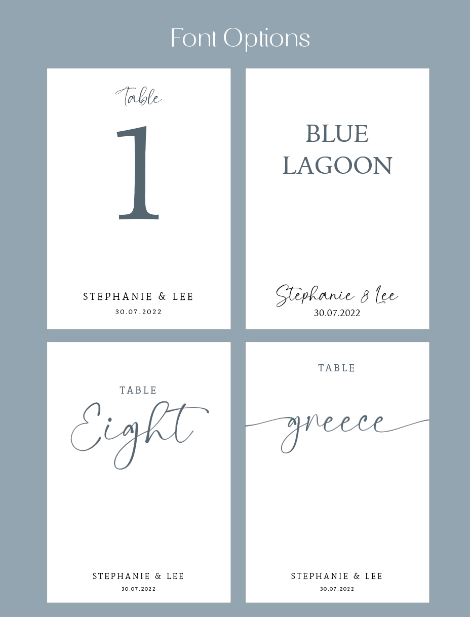Our table numbers come in A5 size, but if you need a different size, just send us a message and we'll do our best to accommodate your needs.