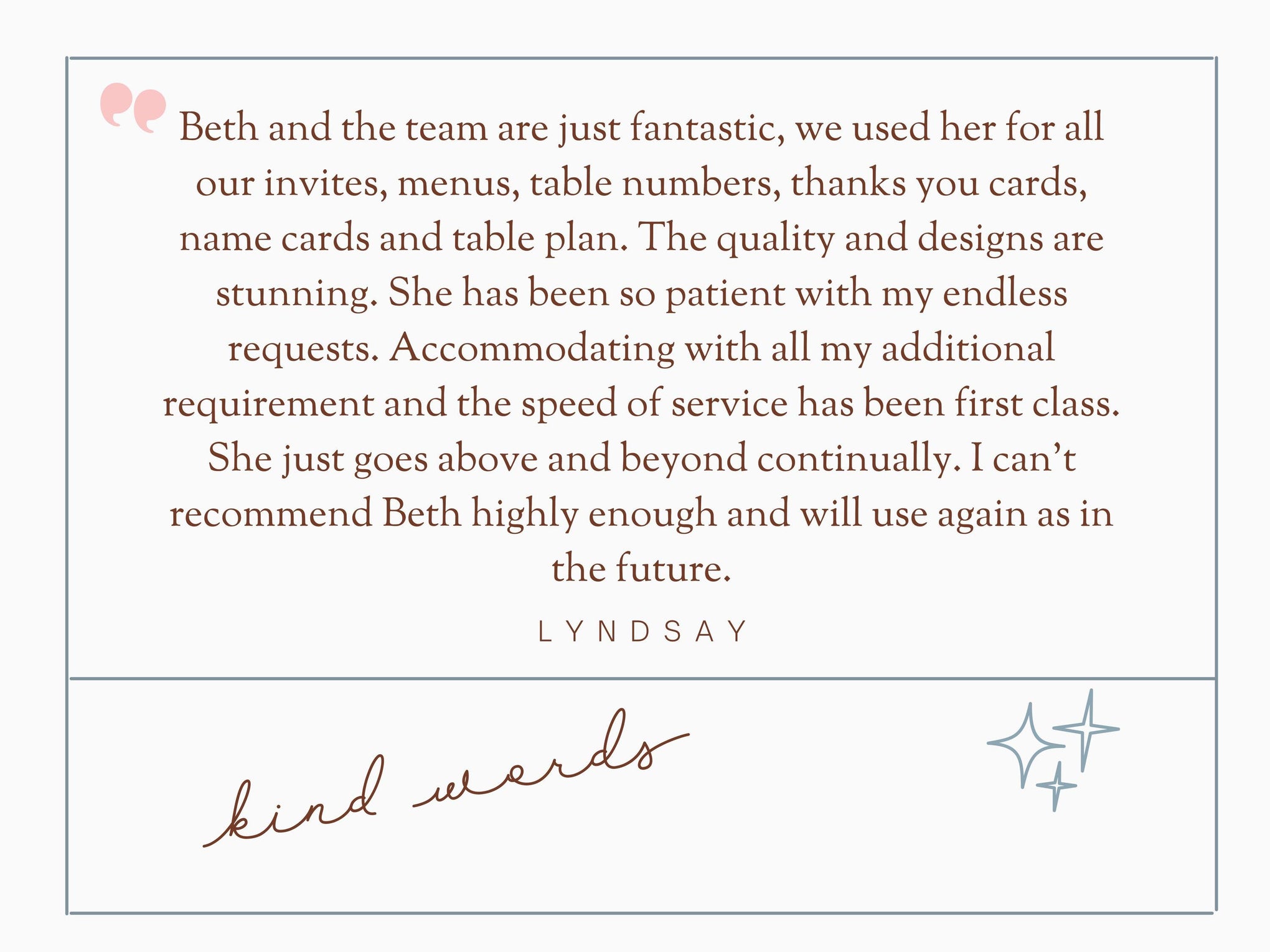This ensures your invitation suite is created with care, attention to detail, and the finish it deserves.