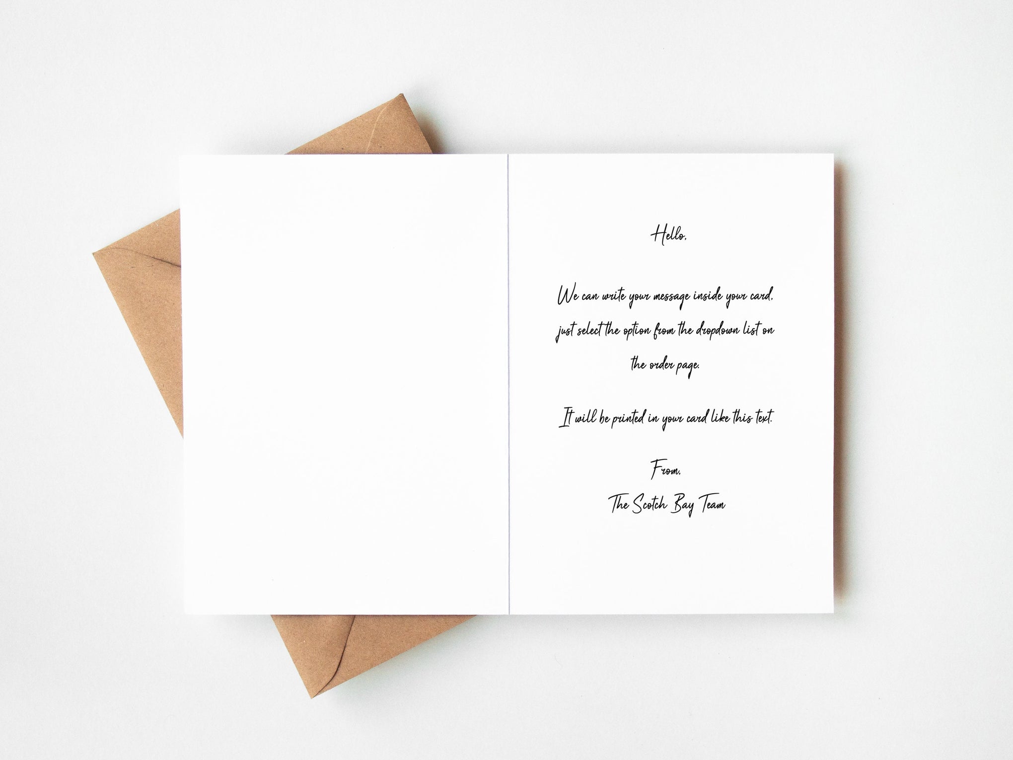 But we don't just stop there! We offer a convenient Write and Send option, where we include a personalised note of your choice in the card and send it directly to the recipient in a Kraft envelope. Just make sure to provide the recipient's details in the shipping information, and we'll take care of the rest.
