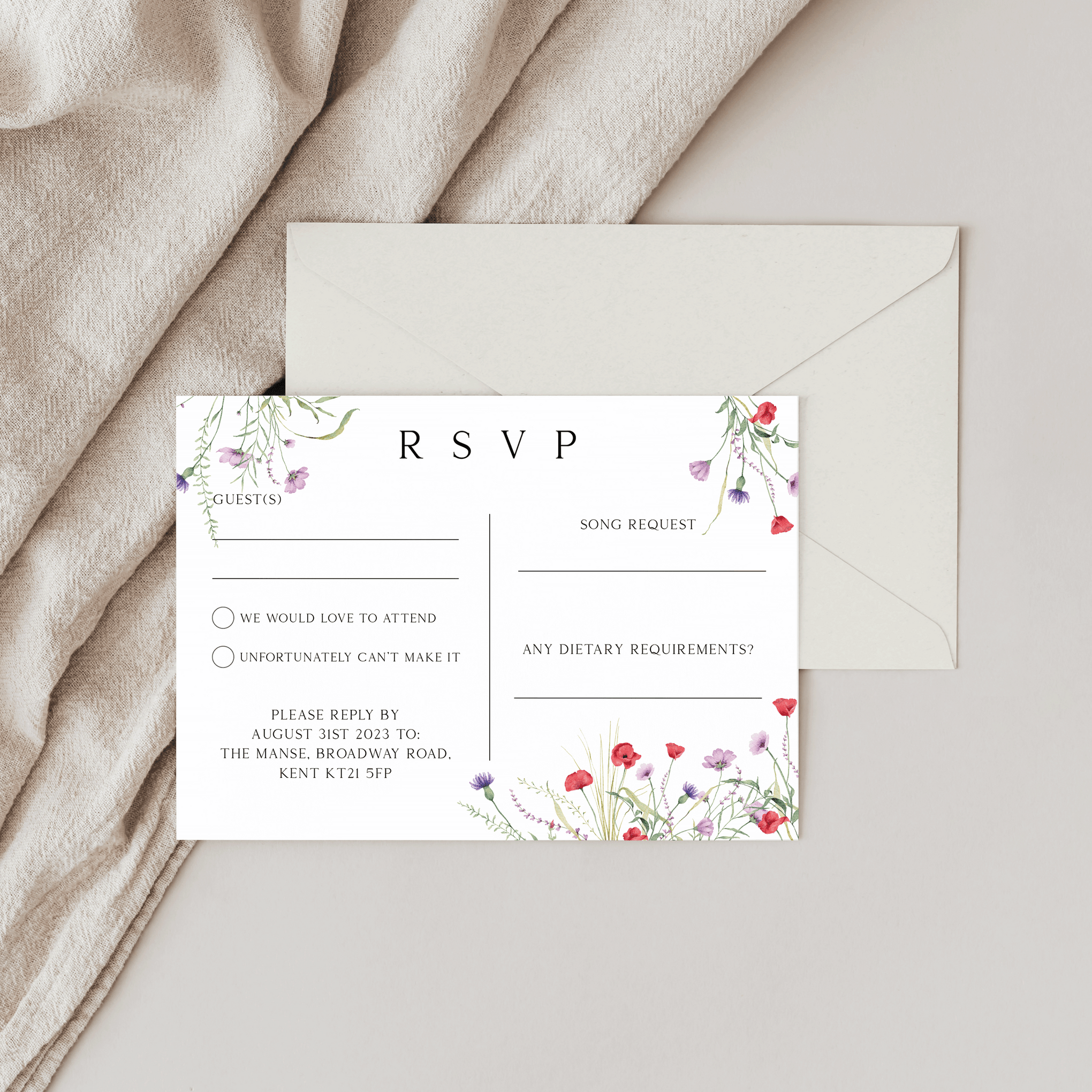 Our A6-sized RSVP cards are designed to simplify the response process for your guests. These cards come with a vanilla envelope as standard, ensuring that your guests can easily reply to your invitation. For added convenience, our postcard-style RSVPs are designed to be popped straight in the post.